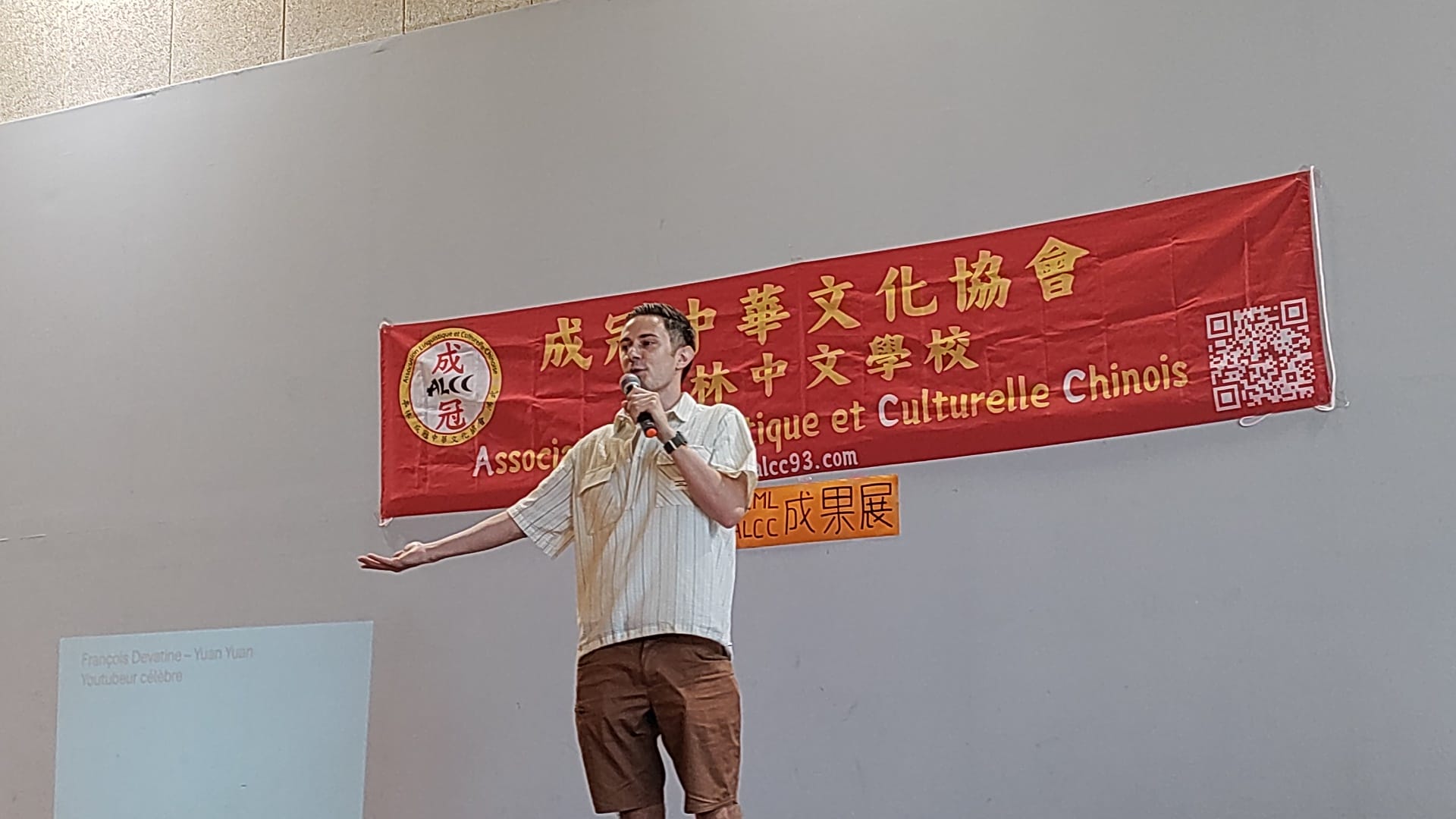 Le célèbre Youtubeur Yuan Yuan 馮韋元 - 法國台客 (François Devatine) a pris la parole lors du spectacle de fin d'année de l'ALCC au Collège International de l'Est Parisien à Noisy-le-Grand.